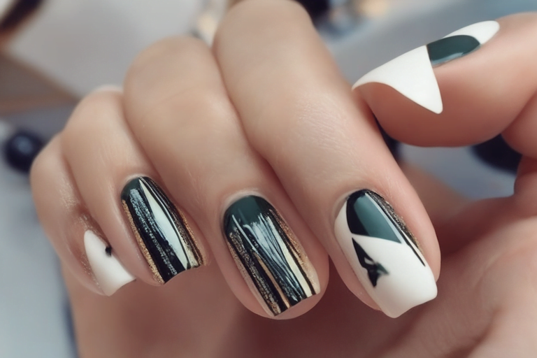 As tendências incluem unhas geométricas, francesinhas coloridas, designs com glitter, nail art minimalista e o uso de elementos 3D, como pedrinhas e apliques.